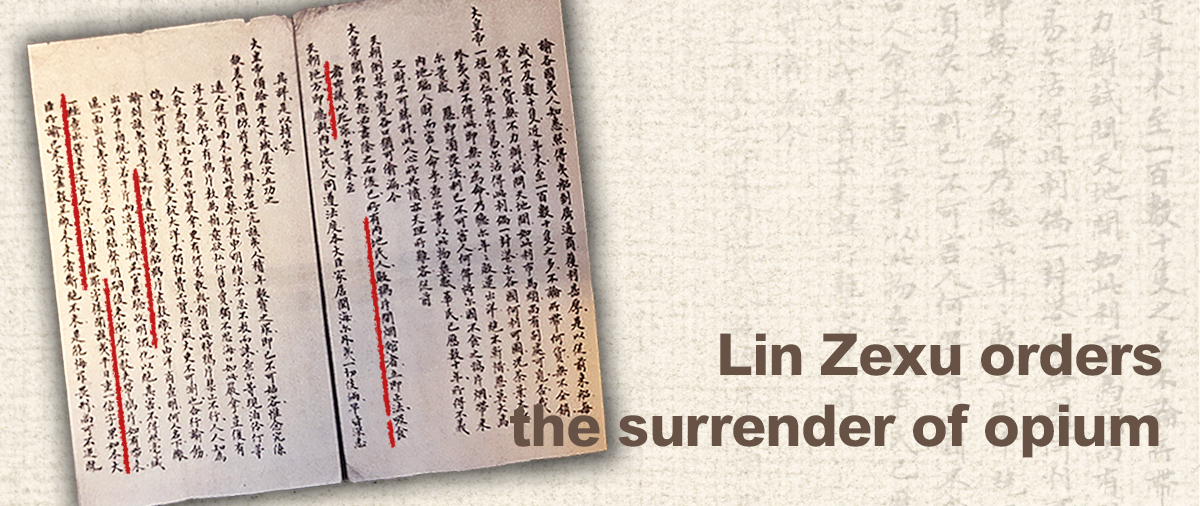 Lin Zexu, appointed Imperial Commissioner by Emperor Daoguang in 1838, arrived in Guangdong the following spring to spearhead the opium ban campaign. He was regarded as China’s pioneer in its battle against drug abuse.