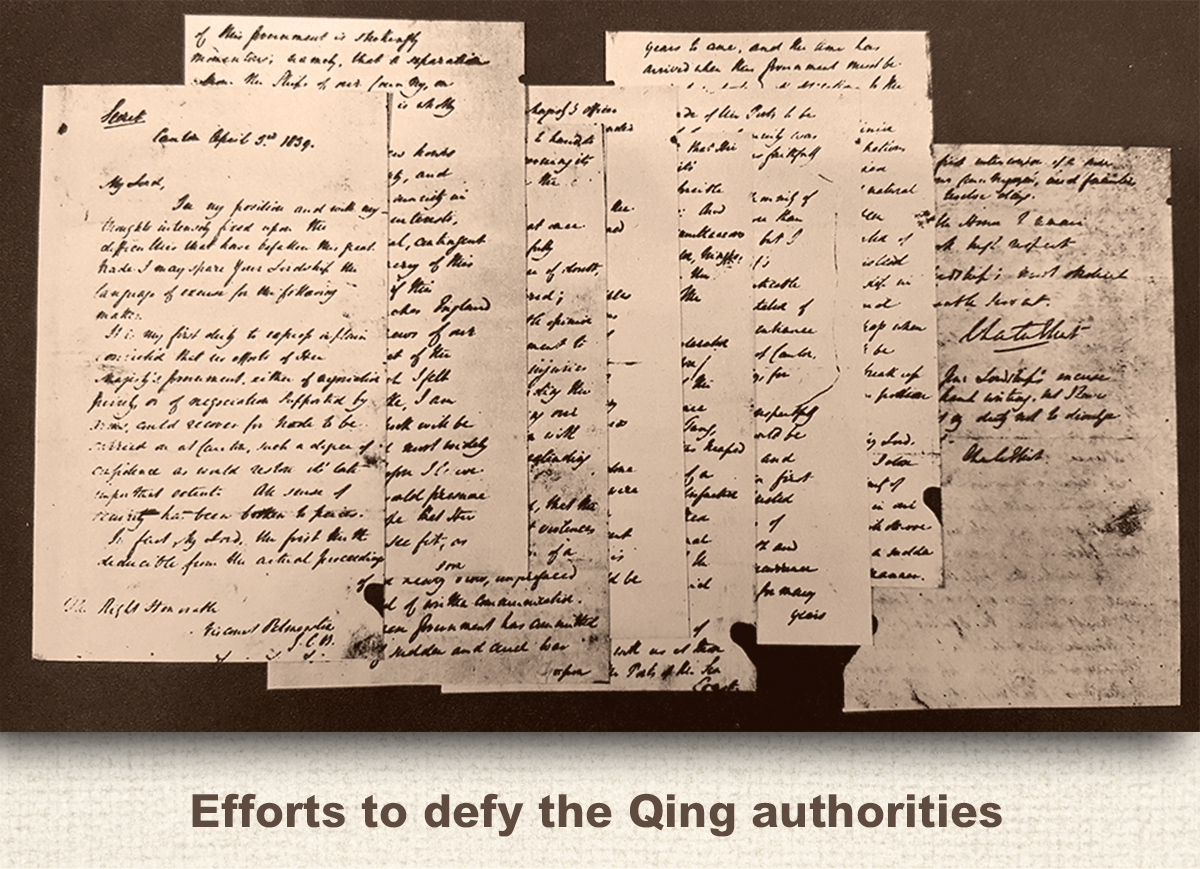During the ban, the Thirteen Hongs (十三行) in Guangdong became the scene of Lin Zexu’s showdown with Elliot and the opium traders. As Lin Zexu’s severe crackdowns continued, Elliot and the opium traders of the Thirteen Hongs gradually began to buckle.