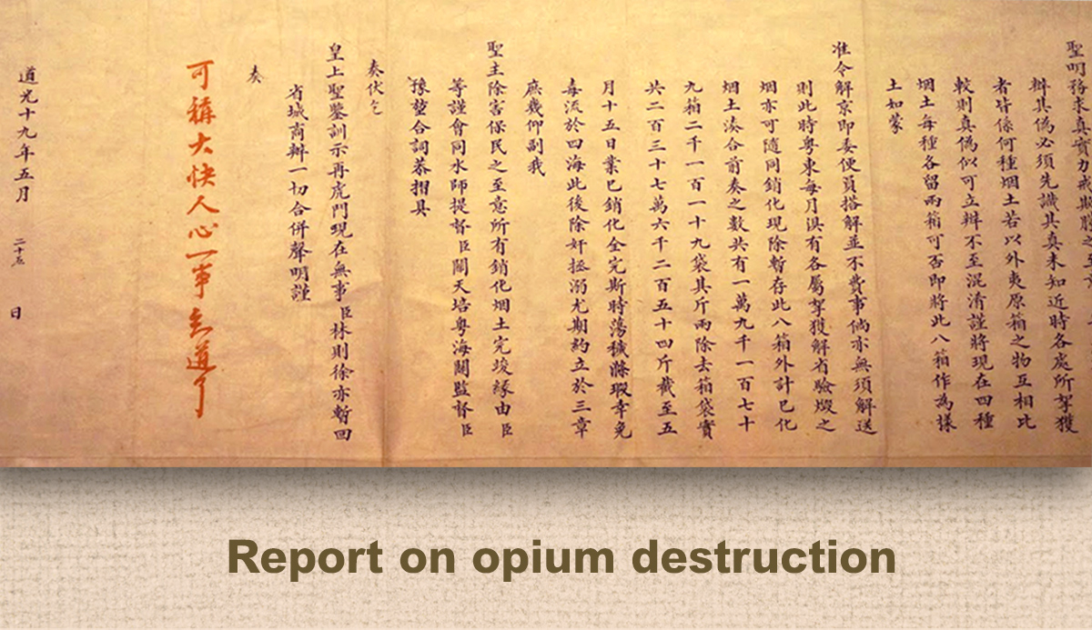 After the disposal of opium in Humen, Lin Zexu in a report to Emperor Daoguang provided details of the amount of opium surrendered and destroyed, retaining a sample of eight boxes. Emperor Daoguang was exhilarated by this news, failing to recognize that China had become embroiled in a very volatile situation. The war that was about to change the country forever was now imminent.