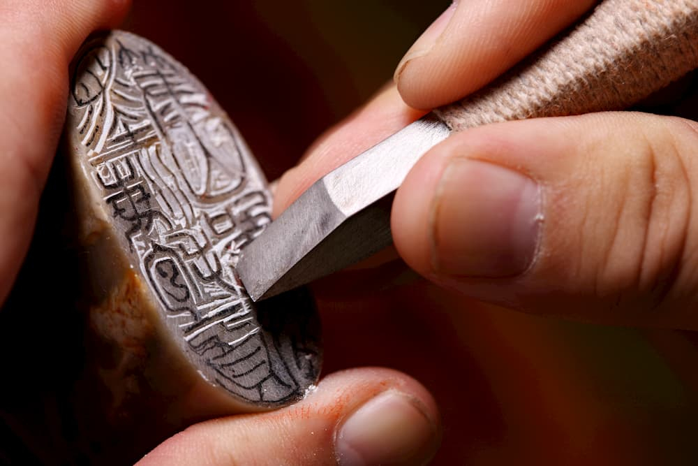 Seal engraving, also known as seal cutting or seal carving, refers to engraving characters or symbols on a seal by using a burin. Seal engraving is an independent art, which consists of the form (pattern) and the structure of the writing, and the skill in using a burin. The ingeniousness of seal engraving art lies in mastering the calligraphic art which is based on the seal script, and skill in using a burin as if it were a writing brush. The art of seal engraving is known as the combined art of calligraphy and engraving. The key elements of seal engraving include thought, emotion, charm, and technique. To enjoy works of seal carving one must start from appreciating these four elements.