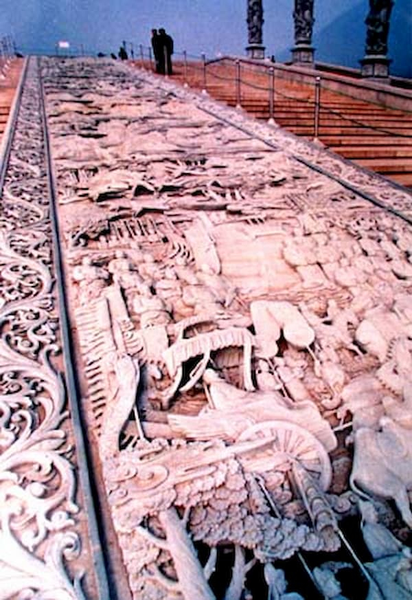 在先民眼中,高聳的泰山是最接近天神的地方,只有登上泰山,才能與神對話交流。歷代帝王認為他們「受命於天」,為感謝天帝「授命」之恩,他們常在泰山舉行隆重的封禪大典。所謂「封禪」,「封」是在泰山築土為壇祭天,感謝上天;「禪」,是在泰山下除土,報地之功。早在遠古時期,到泰山封禪的帝王已經有72位。自從72君泰山封禪之後,封禪大典便成為太平盛世的標誌。秦、漢、唐、宋等朝代的帝王都曾到泰山封禪告祭,刻石記功。